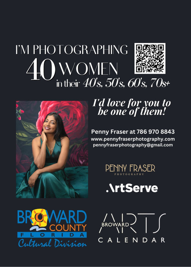 Join us for an extraordinary evening of art and empowerment at the "40 over 40 Bombshell Series" reception and exhibition. Fine art portrait photographer Penny Fraser invites you to ArtServe on September 23, 2023, from 6pm - 8pm, where she showcases 40 captivating portraits of women in their 40s, 50s, 60s, and beyond. These stunning images challenge ageism, redefine beauty standards, and inspire us with the stories of these remarkable women. Immerse yourself in the visual display, where each photograph is a testament to the strength, relevance, and individuality of these incredible women. Engage in meaningful conversations with like-minded individuals and connect with a community that uplifts and empowers women of all ages.